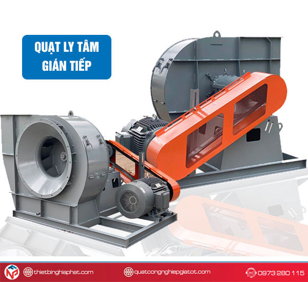 Truyền động gián tiếp: Động cơ được lắp bên ngoài luồng khí, truyền lực qua dây curoa và puly – giúp bảo vệ motor khỏi nhiệt độ, bụi, khói độc hại.