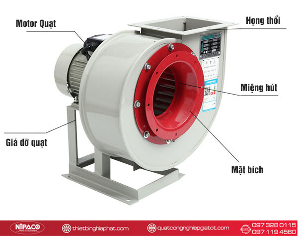 Một chiếc quạt ly tâm thấp áp gồm các bộ phận chính: